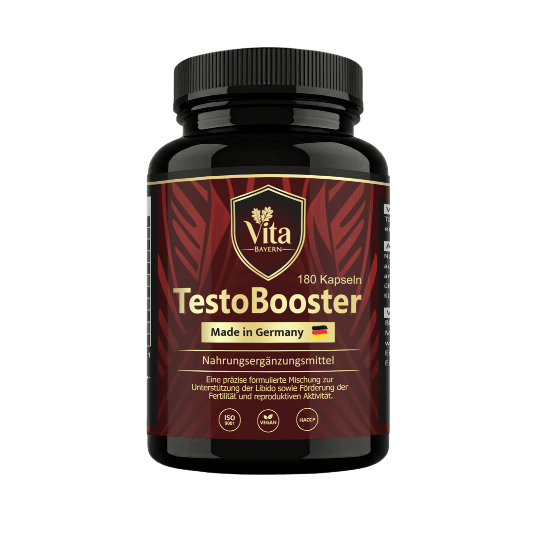 VITA BAYERN® TestoBooster is a “precisely formulated mixture” designed to support libido, fertility, and reproductive activity. This high-dose supplement combines traditional botanicals like Maca and Tongkat Ali with essential micronutrients, including Zinc and Vitamin D, to promote hormonal balance and physical performance. Manufactured in Germany, this vegan and gluten-free formula is produced under strict ISO 9001 and HACCP standards.
