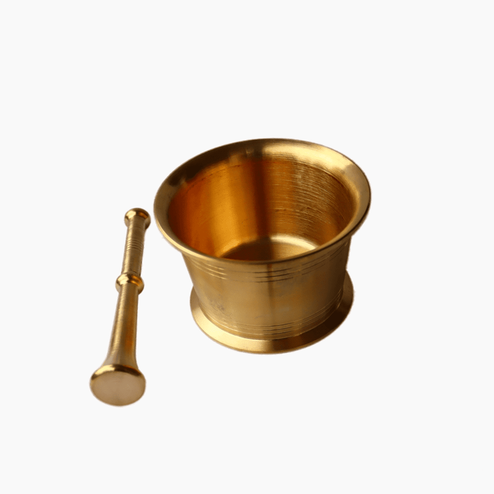 Our mortar & pestle impresses with its traditional design and high-quality brass, ideal for authentic kitchen experiences.